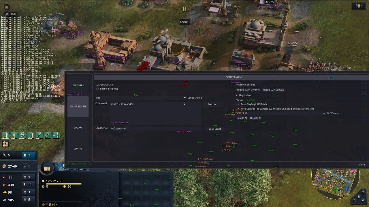 ИИ играет за вас Работает в мультиплеере (1vs1) Работает в рейтинге (1vs1) Автозапуск при старте матча Автоконтроль камеры Уровни сложности Лёгкий Нормальный Сложный Очень сложный Ridiculous / Outrageous / Absurd SCRIPT ENGINE