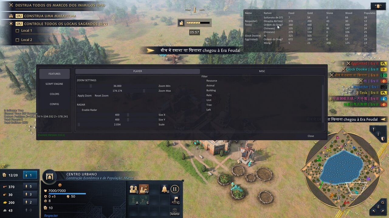 Имя игрока Цивилизация Команда Популяция Ресурсы Золото Еда Дерево Камень Entity ESP Stream Safe ENTITY CATEGORIES