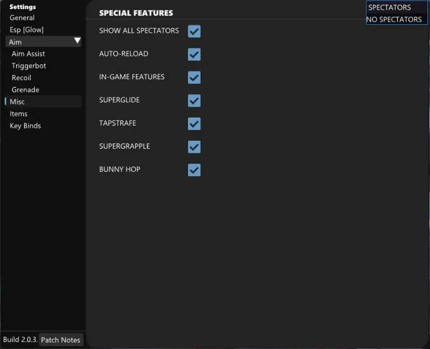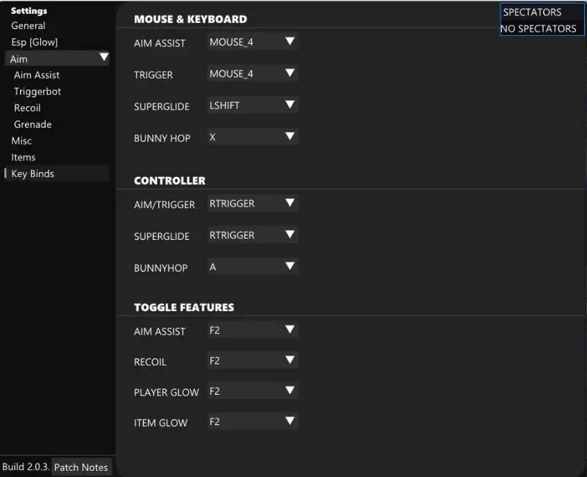 Controller Support Show Spectators Spectator Count Grenades Prediction Superglide SuperGrapple TapStrafe Fast/Auto Reload BunnyHop Scripts ( Seer HP / Item Icons / Auto Loot / Disable Auto Loot If Spec ) [in progress]