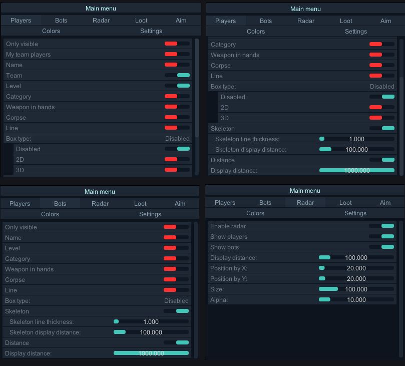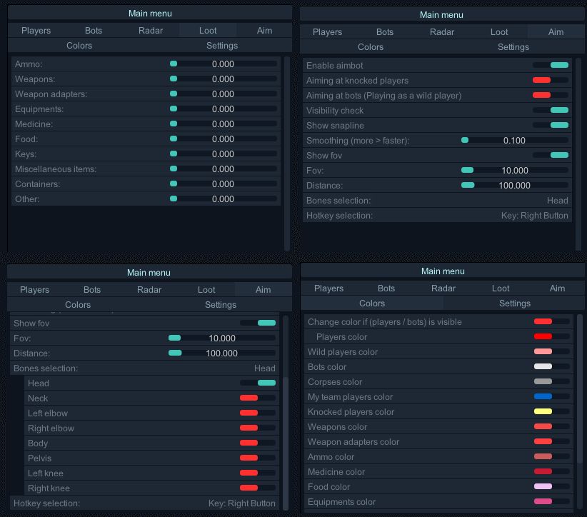 Do you want to become invincible in Arena Breakout: Infinite? The Crooked cheat will provide you with the best gaming advantage! The aimbot will allow you to accurately hit enemies, and the illumination of players, bots, loot and containers will make your hunting for loot and battles as effective as possible. Flexible color settings will provide a user-friendly interface and better visual control on the battlefield.