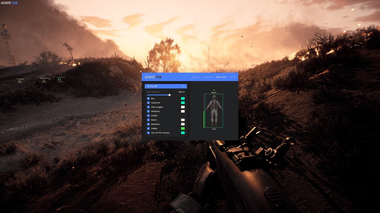 IGNITE is a software solution for the Battlefield 6 game, giving players enhanced control over the gameplay. The cheat includes an ESP system for displaying opponents, allies, equipment, and objects through obstacles. The auto-sight is automatically aimed at selected targets with adjustable accuracy, and the radar shows the positions of objects on the map in real time. Additional functions include target status indication and protection against detection by anti-cheat systems.