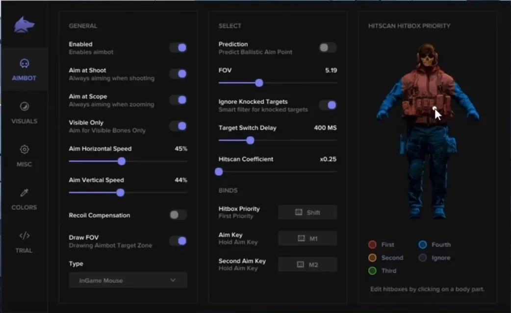 Increase the efficiency of your COD: Black Ops 6 game with the FECURITY cheat! This advanced cheat provides a full set of features for full control on the battlefield. Key features include an aimbot with precise guidance, a customizable viewing angle (FOV) for improved aiming, and two aiming keys for flexible game style selection. The anti-recoil function minimizes the shaking of the weapon, providing a stable sight, and the illumination of players, boxes and loot makes it easy to detect all the necessary objects on the map. It has become easier and more convenient to win with the FECURITY cheat!