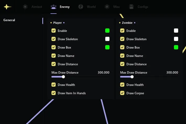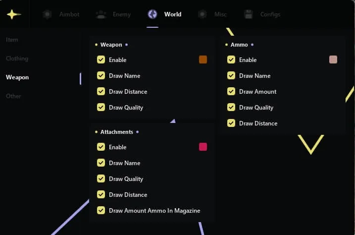Highlight players and loot: Never miss important items or enemies. With the backlight function, you will easily notice all the players and loot in your surroundings, even through walls and other obstacles.
