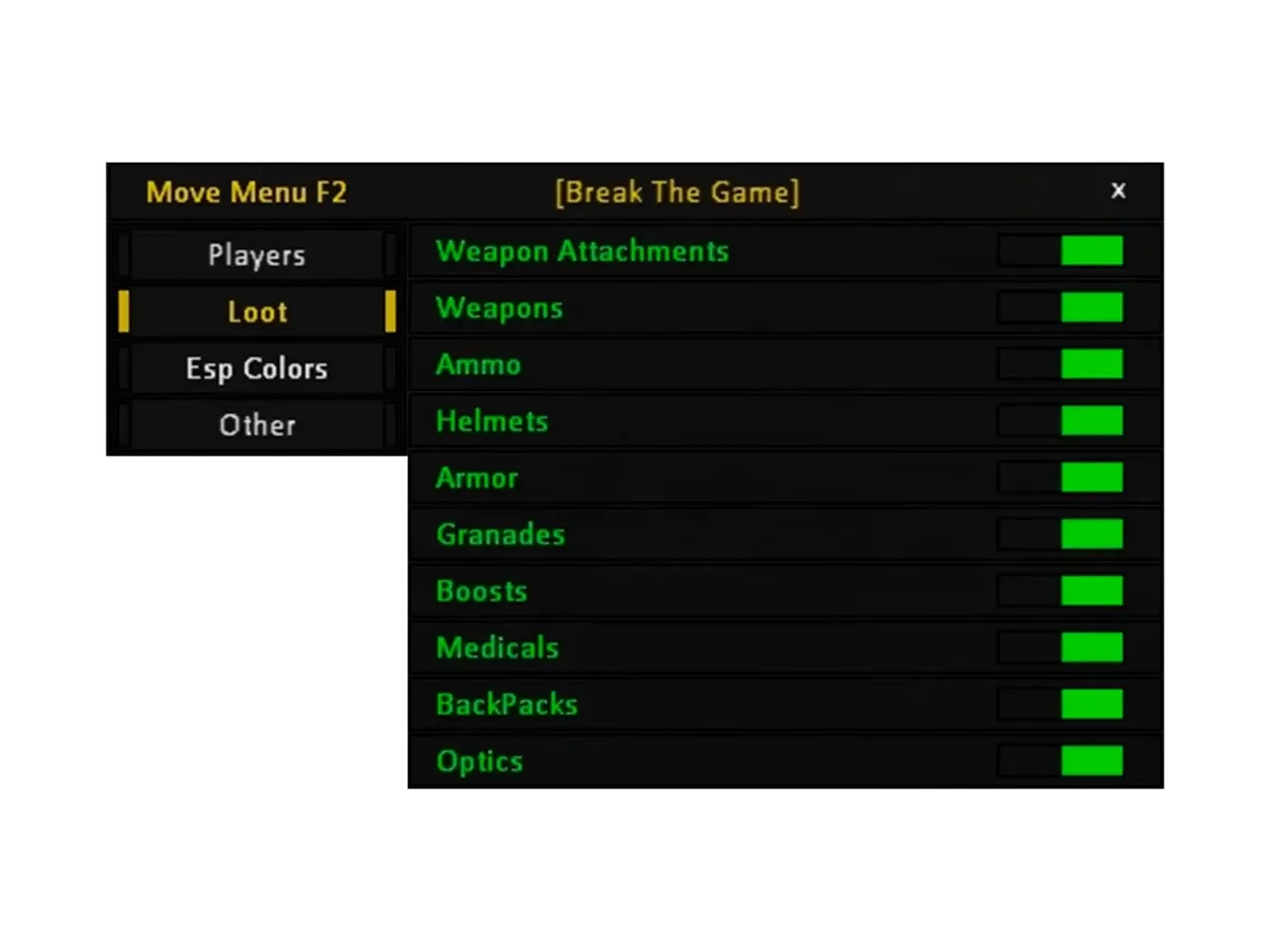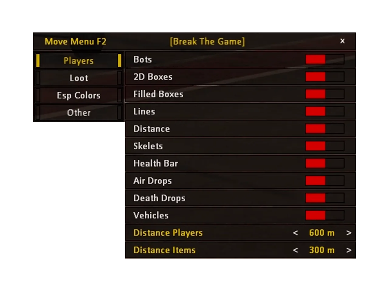 The BTG cheat for PUBG is a powerful tool that gives you an advantage over your rivals. Key features include a wallhack to identify enemies behind shelters, player illumination to easily identify them from a distance, and a loot display function, including airdrops, which will help you always find the best equipment. The BTG cheat is also known for its stable operation and minimal system load. Join the PUBG leaders with our solution and conquer the game.