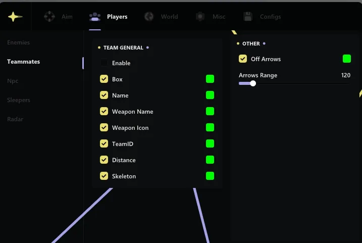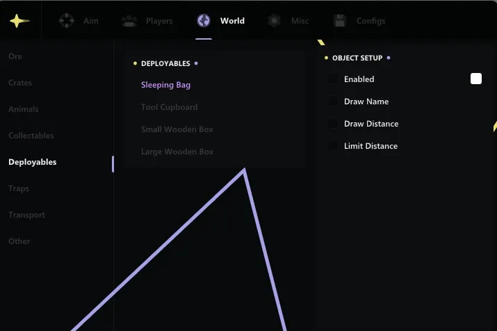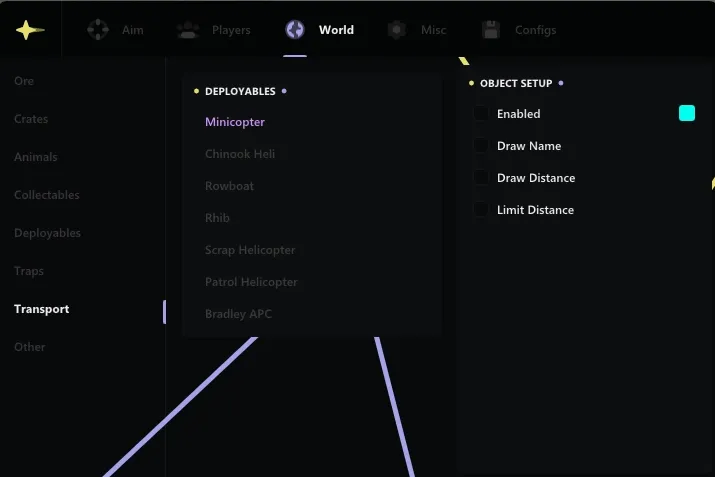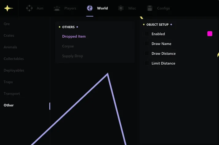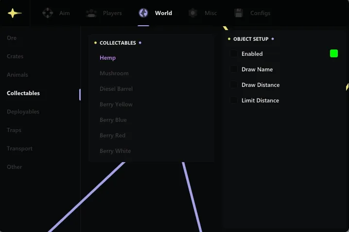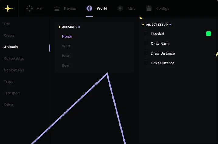 One of the key functions of ANCIENT is to highlight various objects and characters. You can easily detect sleeping players, ore, loot, items, as well as animals and vehicles. Highlighting the players will help you always be one step ahead of your opponents, and adjusting the smoothness will ensure a comfortable gameplay without jerks and delays.