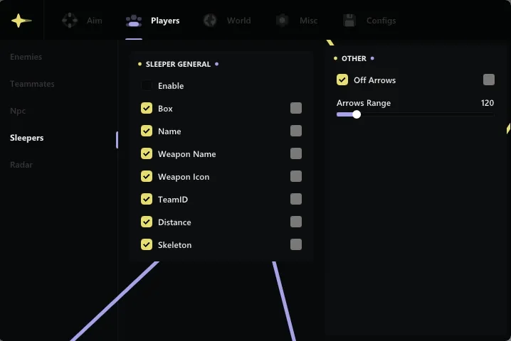 Enemies; Teammates; Npc; Sleepers.
