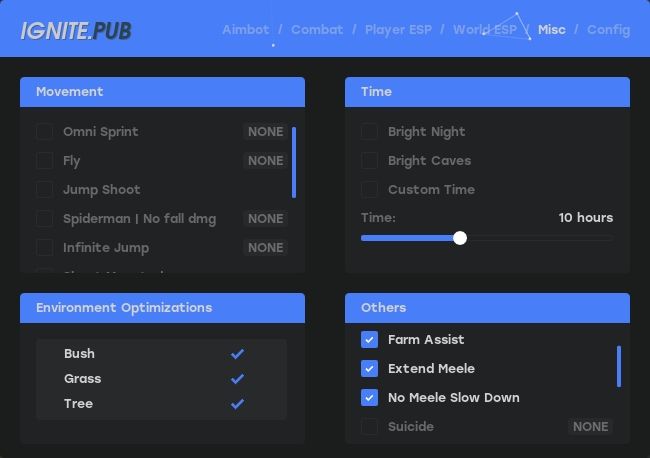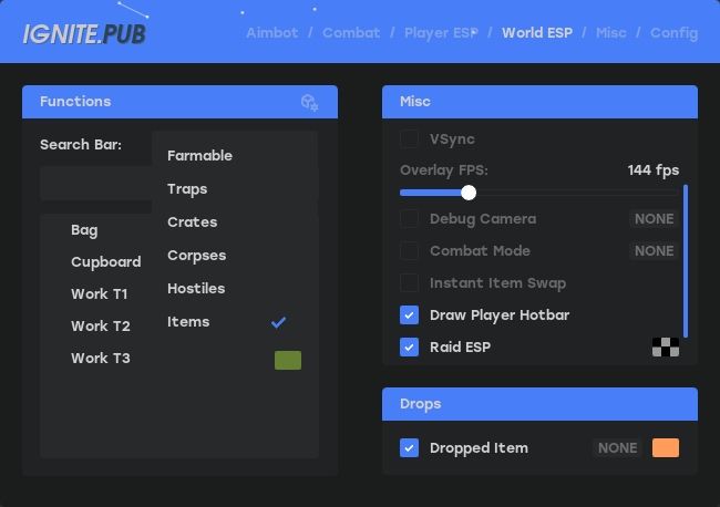 Become a true dominator in Rust with the IGNITE cheat! Includes a powerful Aimbot with fine-tuning, ESP for highlighting enemies, items, and animals, as well as the "World" feature - play without recoil, noise, or restrictions. Safety, stability, and stealth are prioritized. Perfect for PvP and farming!