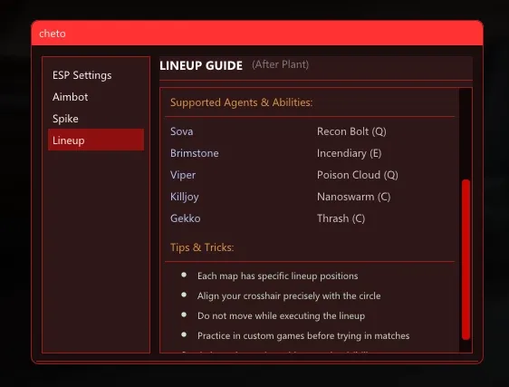 CHETO for Valorant is a professional tool designed for users who want to gain maximum control over their gameplay. The software provides stable performance, extensive functionality, and flexible settings to suit any purpose.