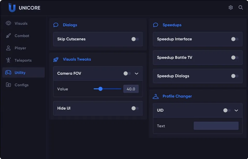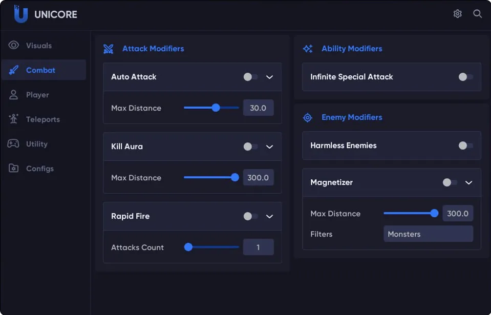 "Enhance your gaming experience with the UNICORE cheat for ZENLESS ZONE ZERO. This powerful cheat gives you access to features such as a knocklip that allows you to pass through walls and objects; a teleporter that instantly moves you anywhere on the map; a game speed booster to speed up gameplay; an auto attack to automatically defeat enemies and a skip cutscene to skip long and boring videos. With UNICORE, your gaming possibilities become limitless.