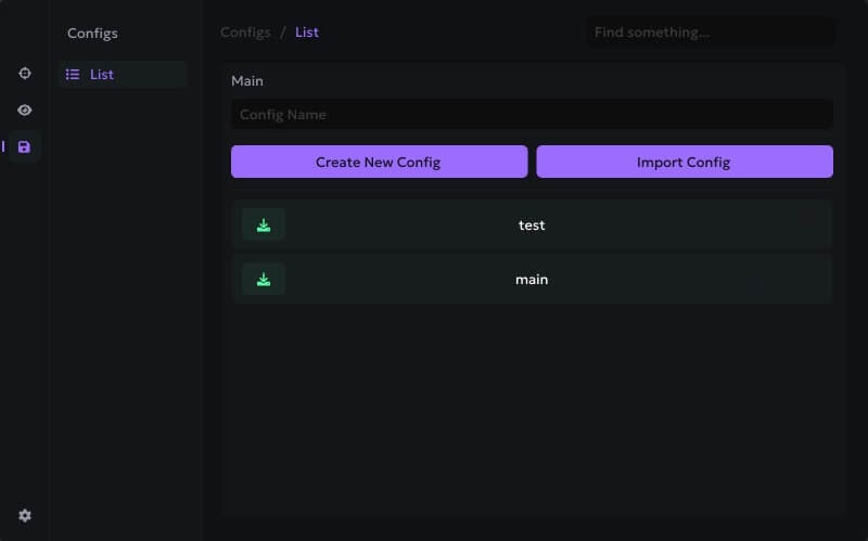 Сохранить конфиг Загрузить конфиг Удалить конфиг Поделиться конфигом
